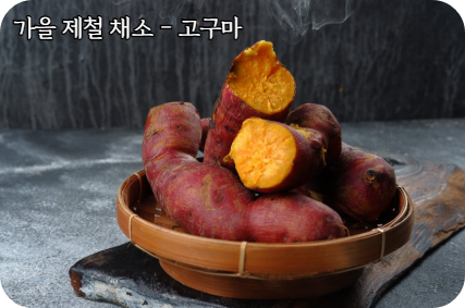 - 고구마는 영양 간식으로 가을을 따뜻하게 만들어줍니다.